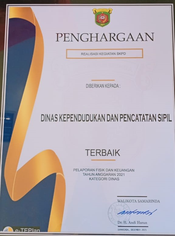 PIAGAM PENGHARGAAN HUT KALTIM KE-64